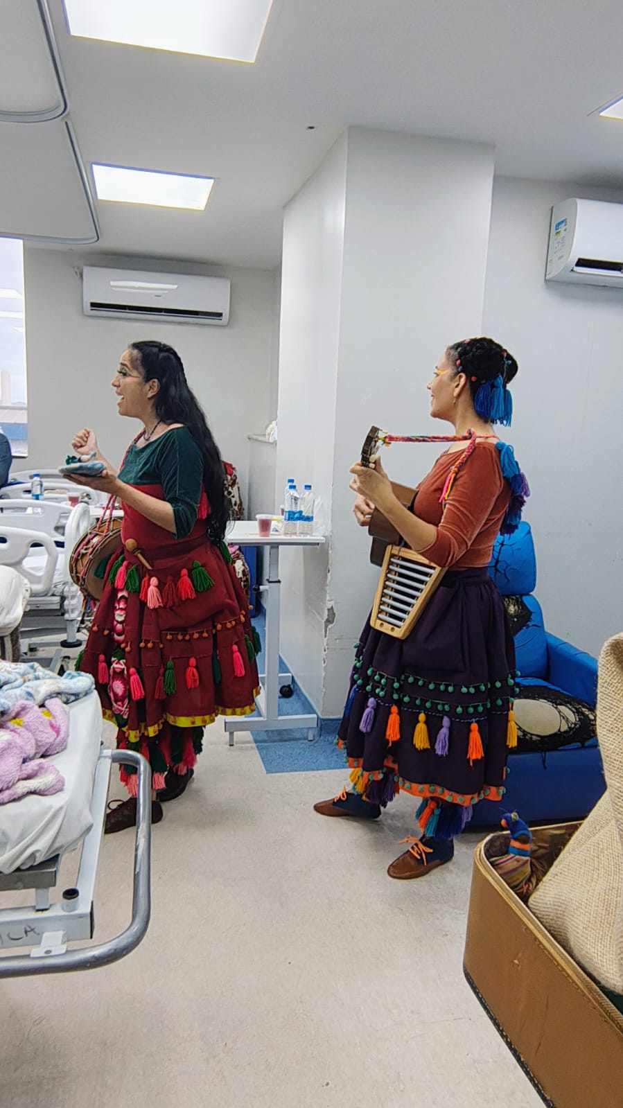 O espetáculo itinerante "Canções para afastar o medo - Contos e acalantos latino-americanos", apresentado pela Qinti Companhia, formada pela atriz peruana, Rosana Reátegui, e pela cantora e compositora uruguaia, Natalia Sarante, tomou os corredores do hospital, compartilhando histórias de maternidade, cuidados e identidade, apresentando cantigas nas línguas de origem guarani, mapuche, quechua, espanhol e náuatle. A dupla de artistas misturou teatro, narração de histórias, animação e cantigas de ninar indígenas, para embalar histórias de mães que moram em diversos territórios da América Latina, na tentativa de afastar os medos e os perigos para seus filhos.