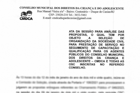 CONSELHO MUNICIPAL DOS DIREITOS DA CRIANÇA E DO ADOLESCENTE DE DUQUE DE CAXIAS – CMDCA/DC - 18/01/2024.