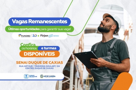 A Prefeitura de Duque de Caxias, por meio da Fundação de Apoio à Escola Técnica, Ciência, Tecnologia, Esporte, Lazer, Cultura e Políticas Sociais(Fundec), em parceria com o Serviço Nacional de Aprendizagem Industrial(SENAI), está oferecendo uma nova chance para quem deseja se capacitar e ingressar no mercado de trabalho..