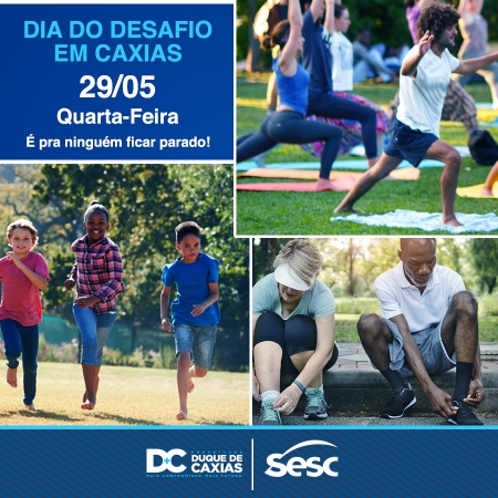 A Prefeitura de Duque de Caxias, através das secretarias municipais de Educação, Cultura e Turismo, Esporte e Lazer e da Fundec, participa do Dia do Desafio 2019, que acontece nesta quarta-feira, 29 de maio, incentivando a realização de atividades físicas nos quatro distritos da cidade. A ação conta com a parceria do SESC Duque de Caxias. .